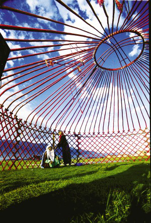 逐豐美牧草而居,是哈薩克牧民每年要做的功課。搭好帳篷架子,坐下來喘口氣,天好藍,這里就是他們這一季的家了