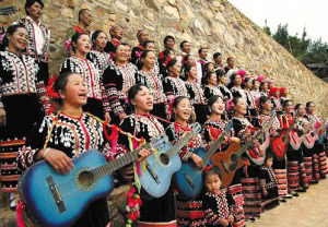 提起吉他,人們大多想到的是時(shí)髦青年彈撥著這種樂器,淺吟低唱,一派風(fēng)花雪月。有誰知道,在云南大山深處,有一群地地道道的農(nóng)民,他們不識(shí)譜,甚至不會(huì)認(rèn)字,卻能將吉他這種西洋樂器玩得令人眼花繚亂。男女老少上百人的吉他集體彈唱,更是見所未見、聞所未聞——這就是“吉他之鄉(xiāng)”云南瀾滄拉祜族自治縣老達(dá)保寨子的音樂傳奇。