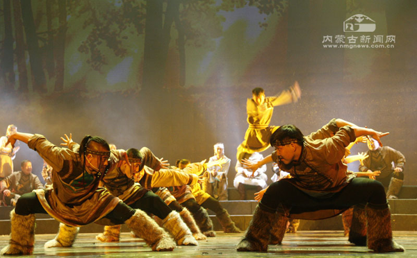 演員們的表演也頗為出色。參演的60多名演員全部來自鄂溫克自治旗烏蘭牧騎,這是一支以年輕人為主的隊(duì)伍,他們?cè)谖枧_(tái)上的精彩表現(xiàn)給這部歷史題材的歌舞劇增添了青春的活力。比如“搶樞”一場,不僅形象地再現(xiàn)了鄂溫克民間一項(xiàng)傳統(tǒng)娛樂活動(dòng)——“搶樞”,突顯了年輕人活潑好動(dòng)的特點(diǎn),而且傳達(dá)出鄂溫克年輕人在遷徙途中不畏艱險(xiǎn)、苦中作樂的頑強(qiáng)精神。尤其是在本場最后,小伙子們一段奔放狂野的群舞盡顯陽剛之美,展現(xiàn)了鄂溫克民族的豪爽與激情。