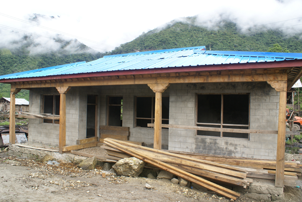 門巴地區(qū)的房屋一般采用石頭或木材壘砌,在錯那縣勒布區(qū),住宅一般是石砌雕房,房高而堅固,房屋主體呈四方形,石砌的四周墻壁基寬,屋頂為人字形雙斜面的薄板瓦上壓著石塊。勒布門巴民族鄉(xiāng)及下游邦金一帶門巴族則用竹篾編制的席子蓋房頂,用木板接邊后再壓石塊。