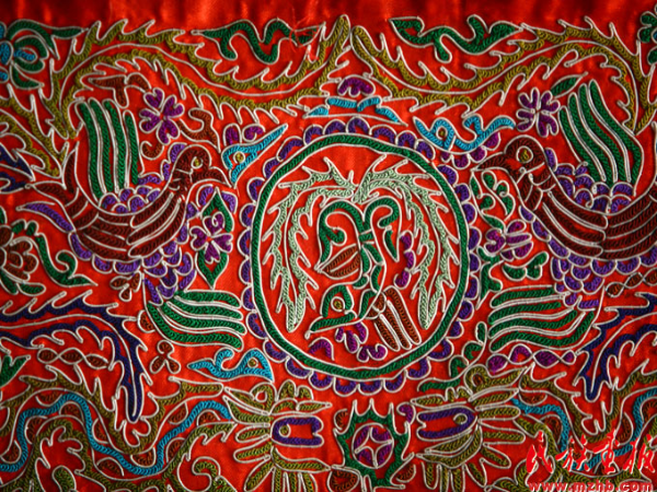 黎錦、壯錦、艾德萊斯綢、氆氌、苗繡、羌繡、馬尾繡、蠟染、扎染……當(dāng)我們面對(duì)這些精美的作品時(shí),我們很難想象到這些東西是由少數(shù)民族婦女的雙手,使用最簡單的紡車、織機(jī)等工具創(chuàng)造出來的,她們靠口傳心授把技法熟記于心,大自然是她們模仿的對(duì)象,她們制作出的服飾不僅色彩豐富,而且還將民族發(fā)展的歷程紀(jì)錄在了服飾上。很多少數(shù)民族沒有自己的文字,對(duì)自己民族歷史的記載除了口口相傳以外,他們把一些提煉升華后的符號(hào)或織或繡或染到服飾之中。苗族的服飾文化在這一點(diǎn)上極其突出。苗族沒有文字,苗族的歷史文化是靠口頭文學(xué)和服飾圖畫藝術(shù)來表達(dá)的。苗族老人對(duì)苗族少年講述民族歷史時(shí),常指著服飾上的各色圖案一一道來。苗族服飾再現(xiàn)歷史的功能,成為苗族傳世的“無字史書”。