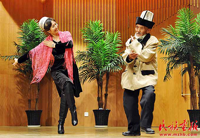 首屆柯爾克孜民間文學約隆演唱展示會上學員表演節(jié)目
