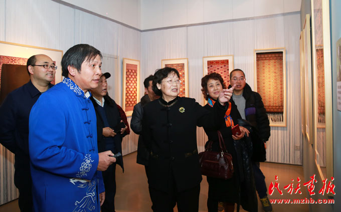 座談會上,中國民族博物館副館長張志文介紹說:土家族是一個古老的民族,有著4000多年的文明發(fā)展史。土家族在全國有2個自治州、8個自治縣,人口達835萬。土家織錦從秦漢時期萌芽,歷經(jīng)賨布、溪布、斑布、土錦等幾個發(fā)展階段,在明、清時期開始定型,至今已有2000余年的燦爛歷史。中紀委駐財政部紀檢組原組長、全國婦女手工編織協(xié)會副會長賀邦靖說:土家織錦是土家婦女智慧的結晶,是武陵山區(qū)文化精準扶貧的重點項目之一。從這個展覽上我們不僅可以看到土家織錦的燦爛與美麗,還可以看到國家實施文化精準扶貧的實效。
