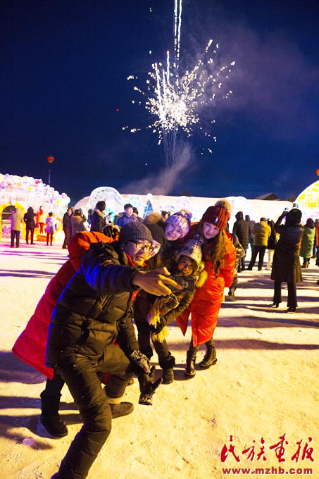 南方的游客第一次看到那么美的雪、那么厚的冰,激動地想咬一口(武倩 攝影)