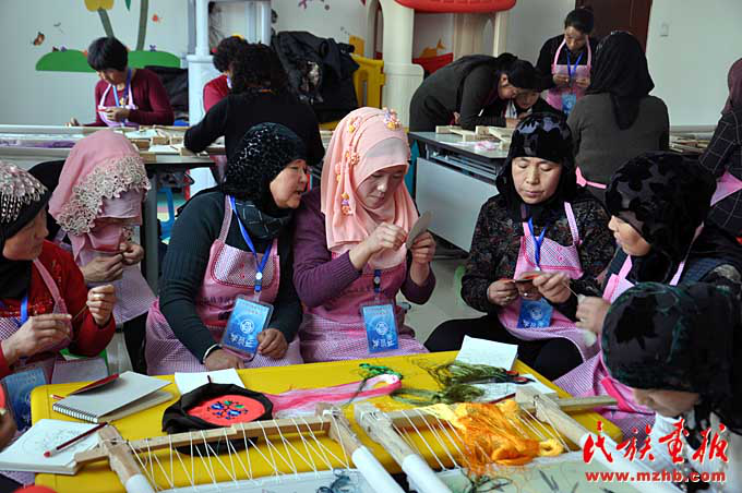 東鄉(xiāng)縣婦聯(lián)開展的手工編織技能培訓(xùn)使更多東鄉(xiāng)族婦女利用刺繡等一技之長(zhǎng)增加了家庭收入(胡發(fā)偉 攝影)
