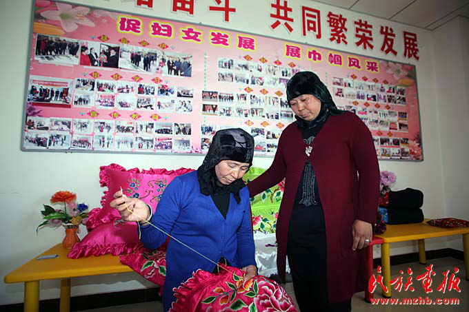 自精準(zhǔn)扶貧實(shí)施以來,東鄉(xiāng)縣婦聯(lián)依托“隴原巧手”等項(xiàng)目,在縣婦聯(lián)、坪莊鄉(xiāng)、布楞溝村、汪胡村等舉辦婦女刺繡培訓(xùn)班50余期,邀請(qǐng)專家指導(dǎo)教學(xué),并統(tǒng)一刺繡品樣式和質(zhì)量。把有基礎(chǔ)、感興趣的婦女發(fā)展成為培訓(xùn)骨干。馬阿英社的妹妹馬英英是骨干之一,她對(duì)記者說:“婦聯(lián)組織我們?nèi)ブ萆蠀⒓优嘤?xùn),用所學(xué)到的編織技術(shù)帶領(lǐng)貧困婦女發(fā)展,更好發(fā)揮‘傳幫帶’作用?!?/p>