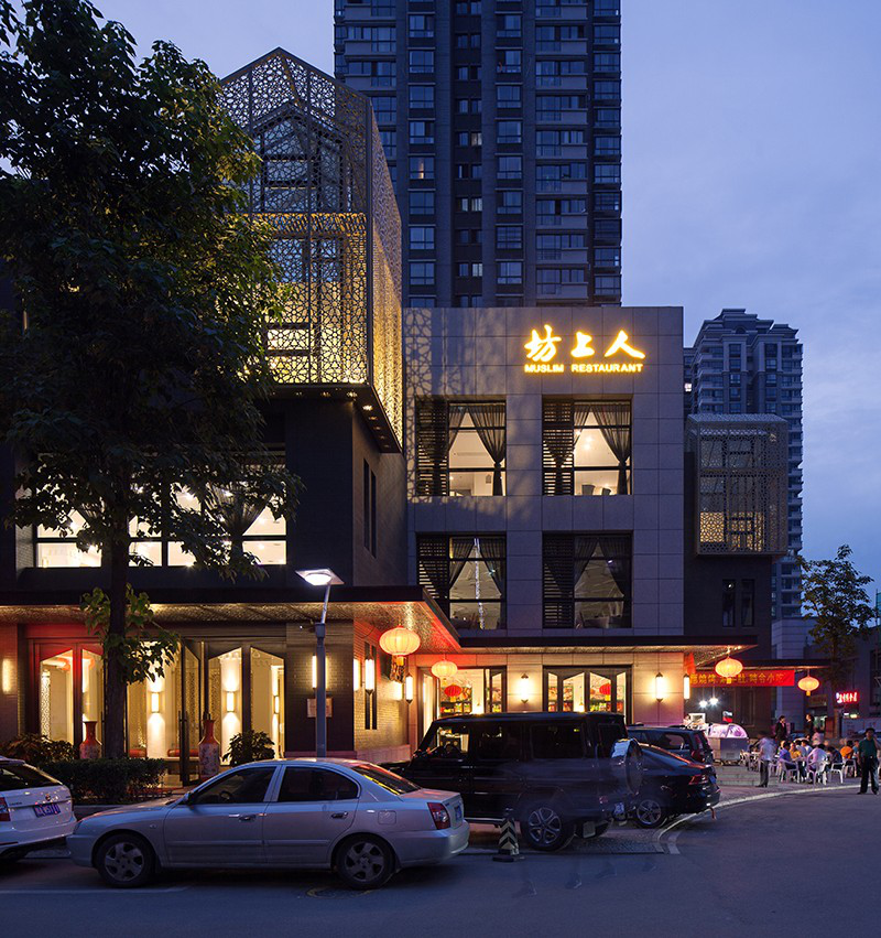 夜色中的坊上人飯莊