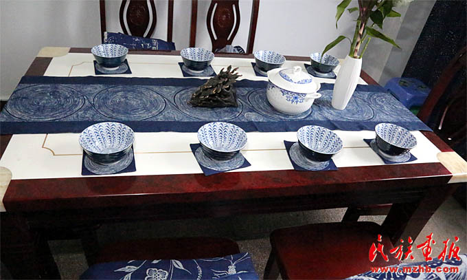 楊文斌老師和她的夫人梁定芳老師都是“非遺”傳承人?,F(xiàn)在他們忙著著書、講學(xué)、開研討會。談起蠟染、談起民族民間工藝,楊文斌老師滔滔不絕:“現(xiàn)在要從三個方面認識和研究民族民間工藝:一是從歷史學(xué)、人類學(xué)、民族學(xué)的角度解讀,二是從審美學(xué)、藝術(shù)視覺理念的角度解讀,三是從工藝學(xué)、材料學(xué)、技藝學(xué)的角度解讀?,F(xiàn)在植物染料的加工和染色技藝消失得很快。老祖宗留下的寶貝到我們這代可不能扭曲和斷裂?!?/p>