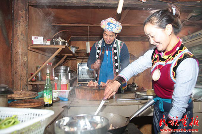 早上,老姆登村73歲的怒族老人斯普早早起來(lái)招呼兒子郁伍林、兒媳魯春花:“春節(jié)快放假了,客棧的生意會(huì)忙得不可開(kāi)交,趁著現(xiàn)在客人不多,家里人先吃一頓團(tuán)圓飯吧。”斯普老伴早年過(guò)世,7個(gè)兒女中老五郁伍林在身邊照顧她。“過(guò)去在春節(jié)才能吃上一頓好飯菜,也要準(zhǔn)備很長(zhǎng)時(shí)間,現(xiàn)在每天都有好吃的,天天在過(guò)年,多虧了黨的好政策?!闭f(shuō)起今天的幸福生活,生在舊社會(huì)的斯普感慨萬(wàn)千。
