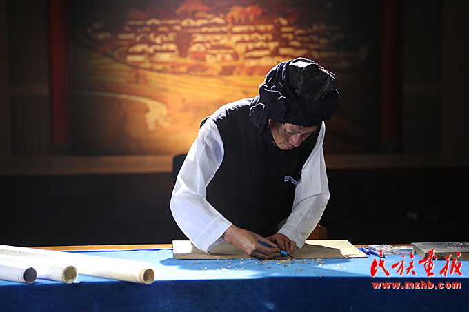 云南省級(jí)“非遺”傳承人、馬關(guān)壯族農(nóng)民版畫師盧正林在制作版畫