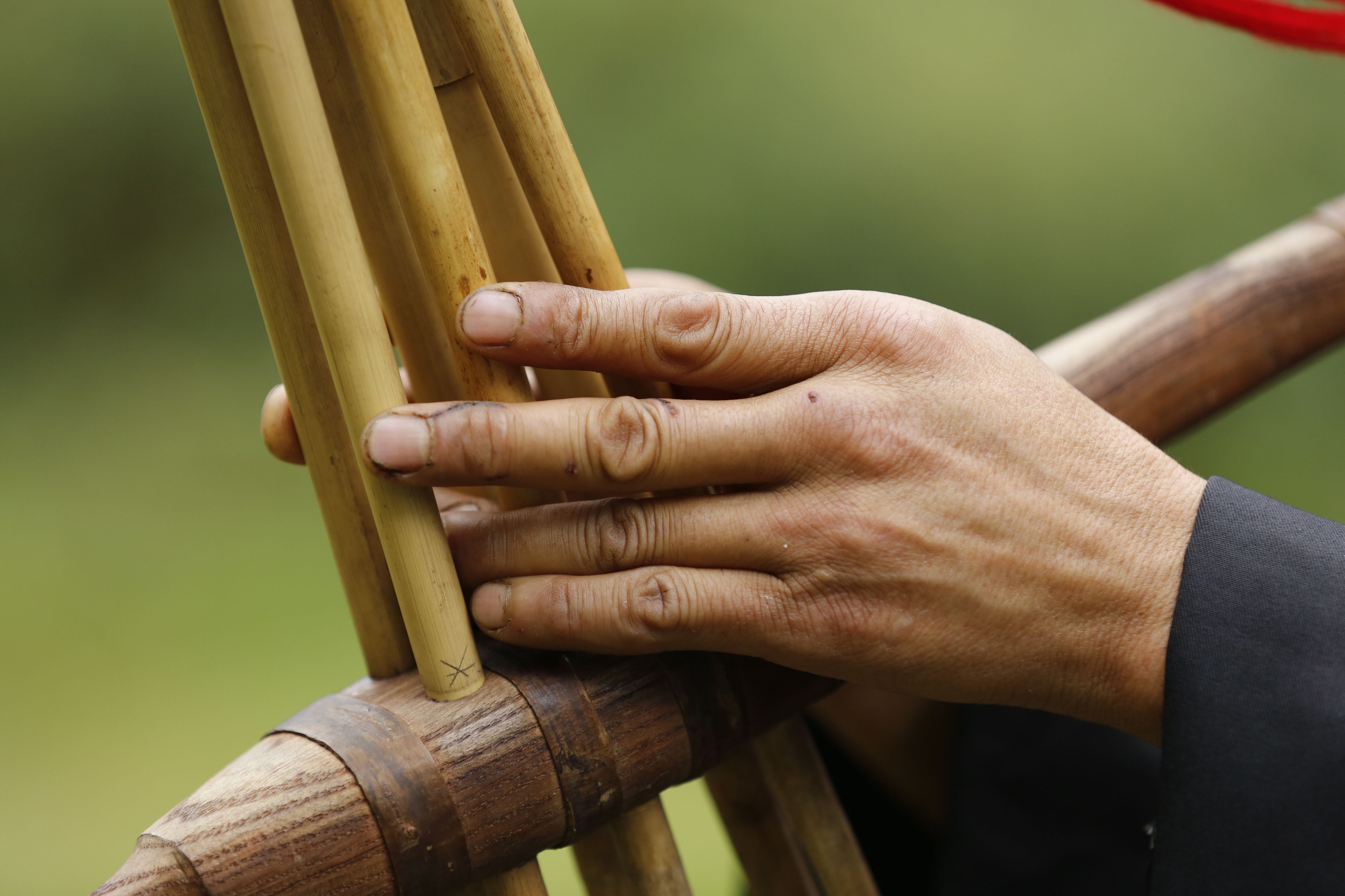 苗族花鼓舞傳承人鄧開倫教授他人吹奏蘆笙1