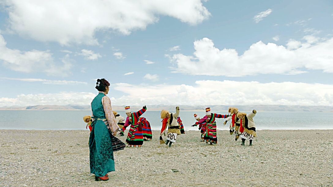 圖片說明:藝術(shù)團(tuán)在湖邊練習(xí)磁石彈舞