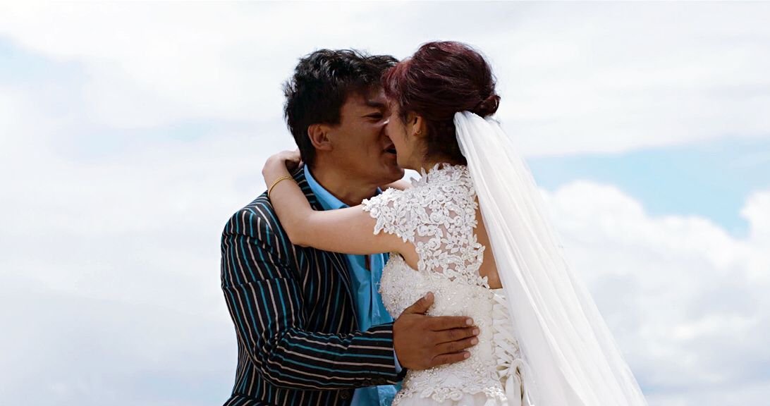 圖片說(shuō)明:拍婚紗照的藏族夫婦