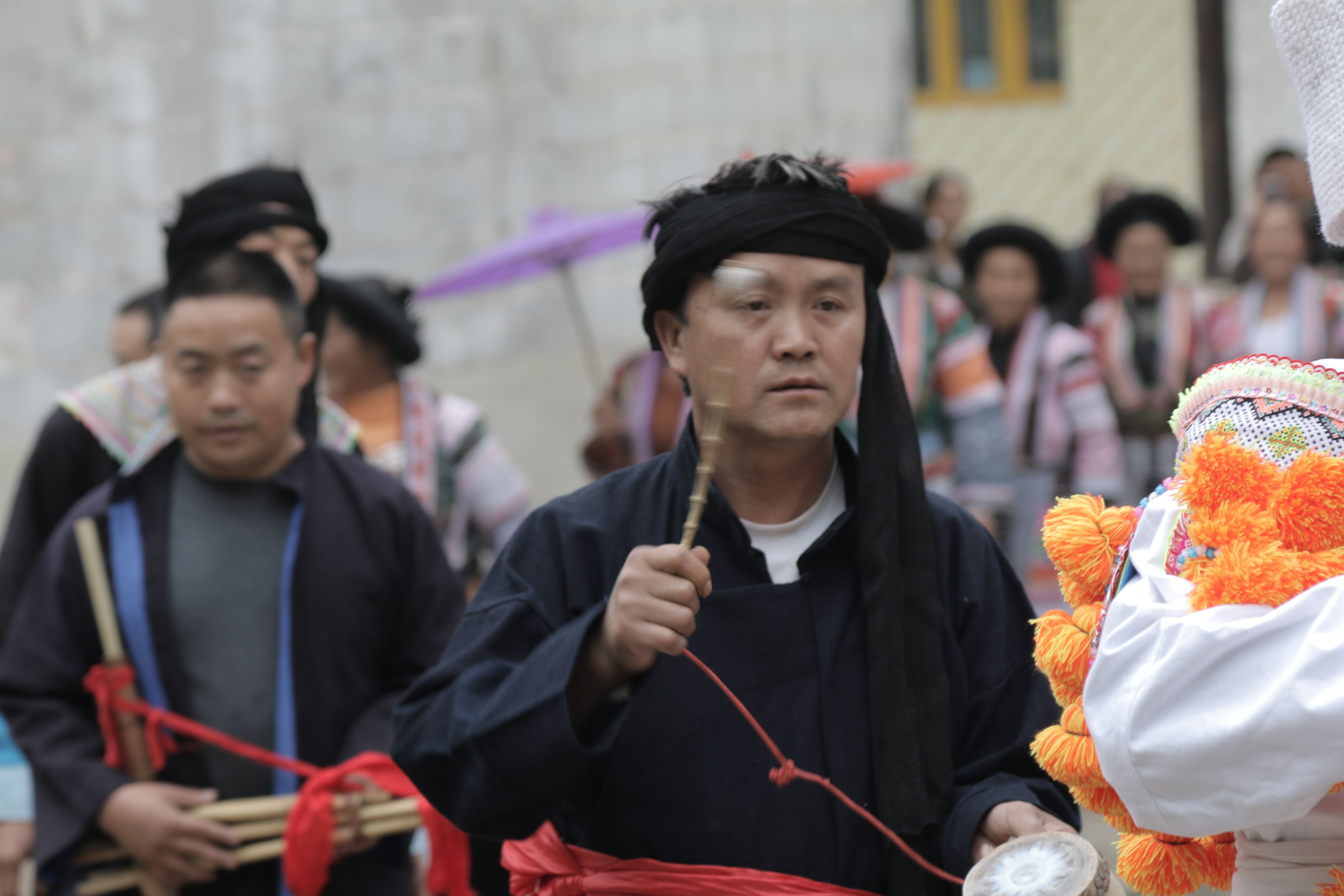 圖片名稱:貴州貴陽苗族婚禮上的奏樂