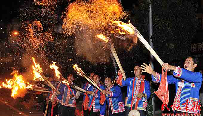 火把節(jié)是彝族傳統(tǒng)節(jié)日中最普遍、最隆重、最富有民族特色的節(jié)日,一般在農(nóng)歷六月二十四至二十六舉行,楚雄彝族火把節(jié)于2006年5月經(jīng)國務(wù)院批準(zhǔn)為第一批國家級非物質(zhì)文化遺產(chǎn)保護(hù)項目。節(jié)日內(nèi)容集民俗活動、經(jīng)貿(mào)活動、文體活動和社交活動于一體,像磁石一樣吸引著各族群眾,許多人就是通過參加火把節(jié)認(rèn)識了彝族,知道了楚雄彝族自治州的。節(jié)日期間,各族人民載歌載舞,?;鸢?、放焰火,火把節(jié)成了弘揚彝族文化、促進(jìn)對外交流、開展經(jīng)貿(mào)活動和各族人民大團(tuán)結(jié)的盛會。