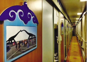 經(jīng)過全新整改后的列車,秉承“天地精華,大美麗江”主題,把納西族、白族等麗江少數(shù)民族代表性文化元素融入列車整體外裝和窗簾、地毯、臺(tái)布等內(nèi)部裝飾。小到窗簾紋飾,大到每一幅裝飾畫,都經(jīng)過了精挑細(xì)選,滲透了麗江文化,通過一車一景、一車一館的方式,把車廂打造成展示麗江各地優(yōu)美自然風(fēng)光和絢麗民族文化的長廊。