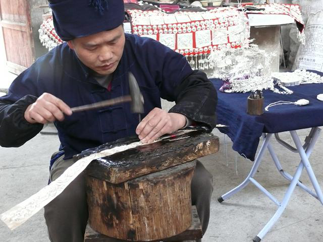 苗族銀飾鍛制技藝歷史悠久,先后經(jīng)歷了從原始裝飾品到巖石貝殼裝飾品、從植物花卉飾品到金銀飾品的演進(jìn)歷程,傳承延續(xù)下來(lái),才有了模式和形態(tài)基本定型的銀飾,其品種式樣至今還在不斷地翻新,由此形成的飾品鏈條成為苗族社會(huì)演進(jìn)的象征之一。貴州省雷山縣、黃平縣、劍河縣、臺(tái)江縣和湖南省鳳凰縣五個(gè)地區(qū)的苗族銀飾鍛制技藝已入選國(guó)家級(jí)非物質(zhì)文化遺產(chǎn)名錄。