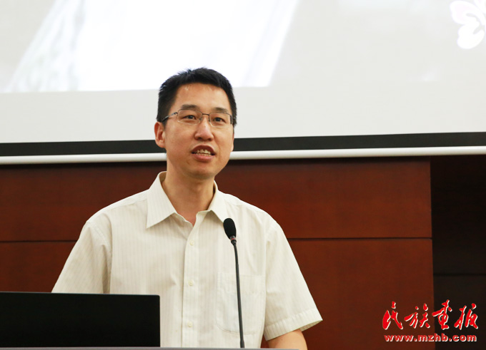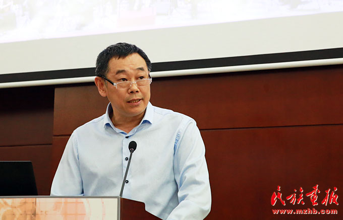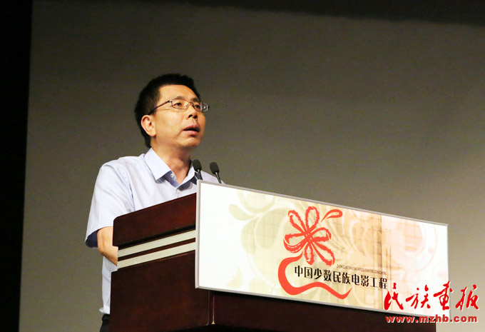 中國少數(shù)民族電影工程領導小組辦公室副主任、宣傳推廣部主任,中國民族影視研究中心主任牛頌主持研討會