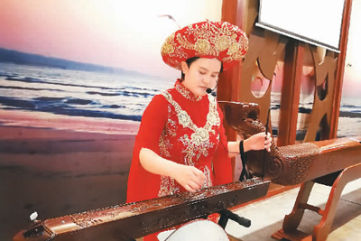 在京族文化傳承與保護中心,記者遇到63歲的獨弦琴藝術(shù)家蘇春發(fā)和32歲的講解員趙霞。“我5歲跟叔叔學(xué)獨弦琴,11歲拜姑丈為師,1991年以來,我親手教出來的學(xué)生已有300多人?!苯衲?月,蘇春發(fā)獲得國家文旅部頒發(fā)的“京族獨弦琴藝術(shù)代表性傳承人”證書。京族姑娘趙霞曾參加“京族哈妹組合”,進入第十四屆CCTV青歌賽原生態(tài)組全國決賽,并榮獲團體優(yōu)秀獎。她左手搖柱,右手撥弦,當場為我們演奏一曲悠揚、委婉的京族民歌《過橋風(fēng)吹》,把京族少男少女的情動心境演繹得非常唯美。