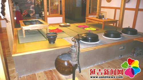 無論什么類型的朝鮮族傳統(tǒng)民居,只要走進(jìn)房屋,第一個(gè)感覺就是有很大的一個(gè)炕。炕是朝鮮族人在室內(nèi)的主要活動(dòng)空間,你看有的炕上親友們?cè)趪缹?duì)飲,有的炕上婦女們?cè)谧龌钣?jì),還有的炕上孩子們?cè)谕嫠?。炕大,散熱面積就大,屋里到了冬天就會(huì)顯得特別暖和。在延邊地區(qū)朝鮮族房屋內(nèi)的灶坑更是別具一格,它下陷在地下,底部低于地面,上部還有蓋板,而蓋板和鍋臺(tái)、炕面形成了一個(gè)平面。據(jù)說,這種灶坑是既好燒、又衛(wèi)生。