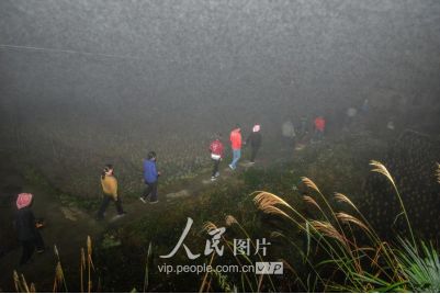 新娘之所以“不落夫家”,一是仍要報(bào)答父母的養(yǎng)育之恩;二是舍不得童年伙伴,還要回到寨子里與伙伴們伴做伴,最長(zhǎng)可達(dá)三年之久;直到同伴都有了對(duì)象才分散,新娘方到新郎家長(zhǎng)住下去,這樣的奇趣婚俗也在黔東南的一些侗族地區(qū)一直得以保存下來(lái)。圖為11月17日凌晨,新郎家派來(lái)的娶親隊(duì)伍點(diǎn)著火把前來(lái)娶親。