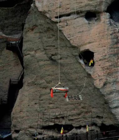 由于龍虎山崖墓下臨深淵,地處絕壁,懸棺是怎樣安放上去的,千百年來一直都是個謎,龍虎山崖墓也因此蒙上了一層神秘的色彩,產(chǎn)生了種種神話傳說:有人說這洞里的東西,是神仙用金絲線吊上去的;也有的說這洞里裝的是無字天書、金銀財寶。