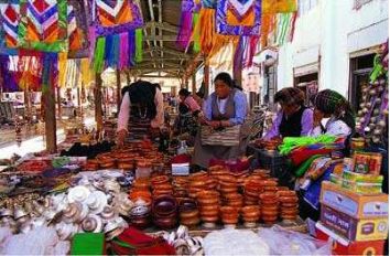 西藏的地勢西北高而東南低,西北寒冷而東南溫和,西北以牧業(yè)為主,東南以農(nóng)業(yè)為本,西北以皮袍御寒,東南多以氆氌裝遮體。皮袍和氆氌裝質(zhì)地不同,但都結構肥大,袖口寬敞,穿著自如,白天陽光充足,氣溫高時,可脫袖露臂,調(diào)節(jié)體溫,夜間可解帶和衣而眠。皮袍和氆氌裝一般均用腰帶,男子穿時提起下擺與膝平齊,腰帶一束,懷里形成空囊,里面可裝不少隨身用品。只要出門,懷中一般必有一件不可缺少的東西,就是木碗。一般的木碗價廉物美,平民百姓承受的起,更重要的原因還有與不共碗習俗有關。