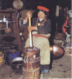 藏族生活在號稱“地球第三極”的青藏高原上,高寒的高原氣候,嚴(yán)酷的生存環(huán)境,造就了藏民族勇敢剛毅的民族個性,也形成了藏民族獨(dú)具高原特色的飲食文化,藏鄉(xiāng)的酥油茶便是其中一朵奇葩。酥油茶是藏鄉(xiāng)群眾日常生活所必需的一種飲料,也是藏族人民待客、禮儀、祭祀等活動不可或缺的用品,極具民族特色和文化內(nèi)涵。剛進(jìn)藏的漢族干部,要適應(yīng)高原環(huán)境,首先要過生活關(guān),其中重要的一條就是能不能喝酥油茶。顧名思義,酥油茶由酥油、茶和食鹽三種原料做成。