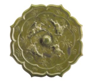 目前我國僅存三面有關打馬球圖案的銅鏡,一件為故宮博物院的傳世品,另一件收藏于安徽懷寧縣博物館,而以揚州出土的這一面銅鏡保存最好,是唐鏡中的珍品。這枚打馬球紋銅鏡收藏于江蘇省揚州博物館,直徑18.5厘米、厚1厘米,1965年出土于揚州邗江泰安金灣壩工地。鏡為菱花形,圓鈕。鏡背主紋為4名騎士,有的高舉鞠杖,作搶球狀;有的俯身向前,鞠杖向下,作擊球狀;四馬馳騁,四人搶球,氣氛熱烈緊張;人與球之間襯以高山、花卉紋,顯現(xiàn)出在郊外運動場比賽的情景,更添一絲活潑的生活氣息。