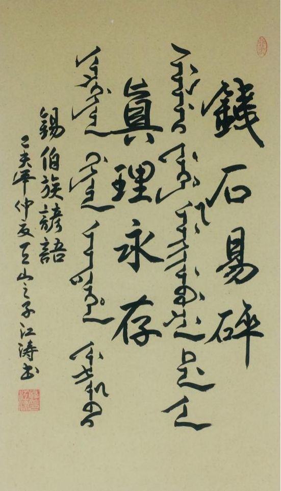 從蒙古文字創(chuàng)立和發(fā)展看,從最初的回鶻人結(jié)合突厥文、粟特文特點(diǎn)創(chuàng)造的回鶻文,到蒙古人在回鶻文基礎(chǔ)上創(chuàng)造的回鶻式蒙古文,再到由梵文、藏文字母演化而成的八思巴字、以及滿族借鑒蒙古文創(chuàng)建的滿文,錫伯族在滿文基礎(chǔ)上改造形成的錫伯文,縱觀其發(fā)展過(guò)程,體現(xiàn)了中華各民族文化的特點(diǎn):即你中有我,我中有你,相互借鑒,又各有特色,共同構(gòu)成了博大精深的中華民族文化。