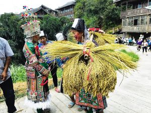 為何鼓藏節(jié)期間必須制作“百鳥衣”?這是村寨中古已有之的規(guī)定:鼓藏節(jié)期間所穿的“百鳥衣”必須是新制作的;如果是舊的“百鳥衣”,必須確保沒有穿著它參加過葬禮,但是參加過婚禮的“百鳥衣”是可以穿的。
