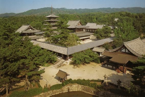 奈良時代雖不到百年,在日本文明史上卻留下了永久的痕跡。奈良地區(qū)的世界文化遺產(chǎn)共有9處,其中6個為寺院,最重要的寺院為法隆寺與唐招提寺。另7處為:東大寺、春日大社、春日山原始森林、元興寺、興福寺、平城宮跡、藥師寺(圖二十五)。