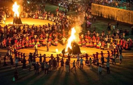 永仁縣彝族在同樣正月初二或初三奉行祭火,稱作開"火神會",涼山彝族把火塘看作是火神居住的神圣之地,嚴禁觸踏和跨越。而到了節(jié)日,各族男女青年點燃松木制成的火把,到村寨田間活動,邊走邊把松香撒向火把,或進行集會,唱歌跳舞,或賽馬、斗牛、摔跤。近代,人們利用集會歡聚之機,進行社交或情人相會,并在節(jié)日開展商貿(mào)活動。