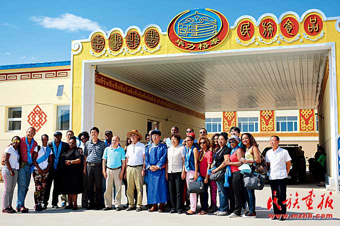 2016年,畢力格泰公司成功申請(qǐng)為國(guó)家2A級(jí)民族食品體驗(yàn)游景區(qū),圖為非洲考察團(tuán)到公司參觀(guān)。