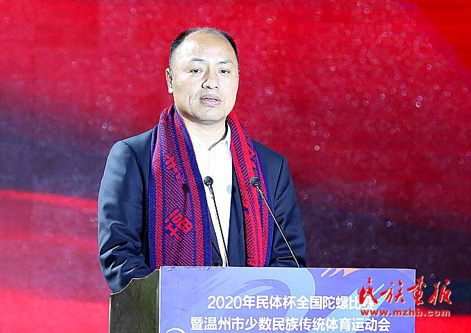 為發(fā)展民族傳統(tǒng)文化體育,促進民族交往交流交融,推進民族團結(jié)進步事業(yè),不斷鑄牢中華民族共同體意識,11月27日,2020“民體杯”全國陀螺比賽暨溫州市少數(shù)民族傳統(tǒng)體育運動會在浙江省溫州市鹿城區(qū)白鹿洲公園隆重開幕。浙江省委常委、溫州市委書記陳偉俊,國家民委監(jiān)督檢查司司長隋青,浙江省民宗委副主任鐘新章,溫州市委常委、統(tǒng)戰(zhàn)部部長施艾珠,市委常委、秘書長王軍,市人大常委會副主任張洪國,市人民政府副市長陳應(yīng)許,市政協(xié)副主席諸葛啟釧等領(lǐng)導(dǎo)出席開幕式,浙江省、市、縣民族工作相關(guān)單位負(fù)責(zé)人及裁判員、教練員、運動員代表600余人參加了開幕式。