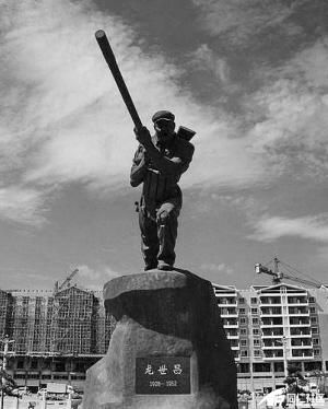 1952年10月14日,上甘嶺戰(zhàn)役打響,龍世昌主動要求參加爆破組。戰(zhàn)斗中,他英勇頑強,在身體多處受傷的情況下,采取投擲手榴彈、利用敵人尸體等手段聲東擊西,炸毀多座敵人地堡。在摧毀最后一座地堡時,他將拉燃的爆破筒塞進敵人地堡,但剛一松手,敵人將爆破筒推了出來,他揀起冒煙的爆破筒又塞了進去,敵人又拼命地向外推,最后,他奮不顧身地用胸膛緊緊頂住爆破筒。隨著轟隆一聲巨響,地堡炸毀了,龍世昌也永遠留在了上甘嶺,留在了異國的土地上。