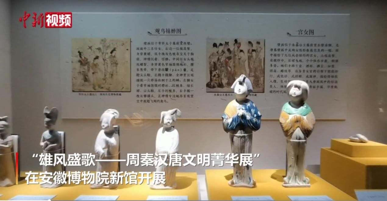 7月6日,由安徽博物院、陜西歷史博物館(陜西省文物交流中心)聯(lián)合主辦的“雄風(fēng)盛歌——周秦漢唐文明菁華展”在安徽博物院新館開(kāi)展。其中,唐朝服飾和女性?shī)y容備受觀眾喜歡。