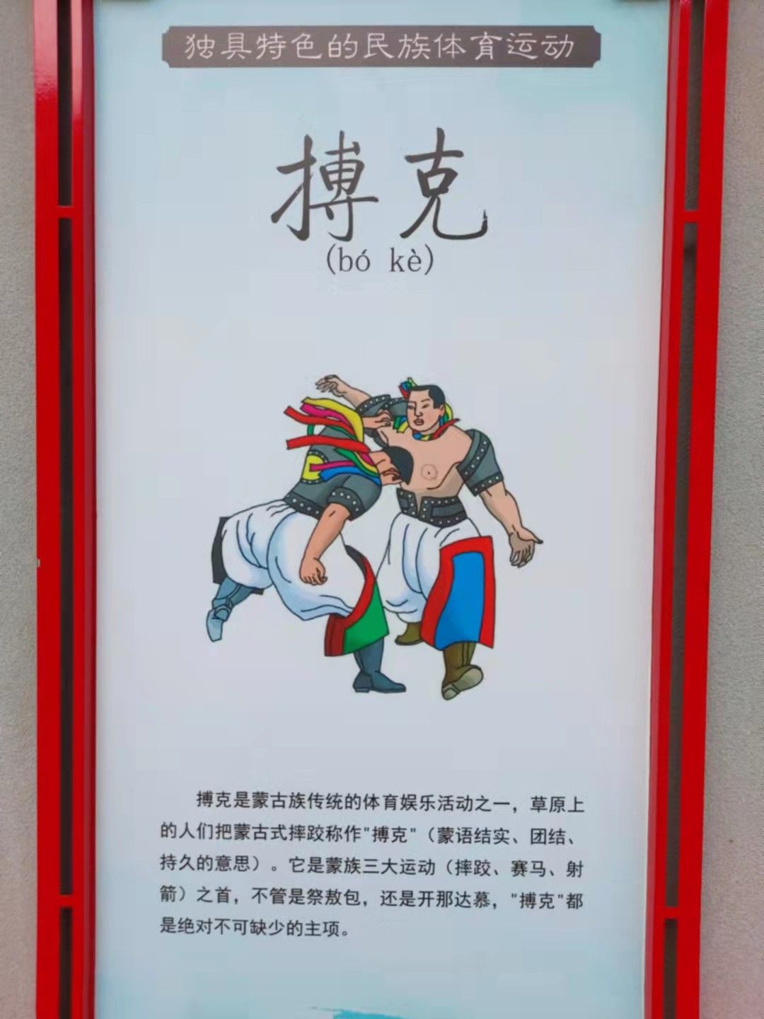 搏克是蒙古族傳統(tǒng)的體育娛樂活動(dòng)之一,草原上的人們把蒙古式摔跤稱作"搏克”(蒙語結(jié)實(shí)、團(tuán)結(jié)、持久的意思) .它是蒙族三大運(yùn)動(dòng)(摔跤、賽馬、射箭)之首,不管是祭敖包,還是開那達(dá)慕,"搏克"都是絕對不可缺少的主項(xiàng)。
