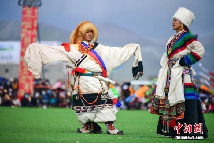 資料圖為西藏自治區(qū)拉薩市當雄縣賽馬節(jié)上的藏族傳統(tǒng)服飾表演。 中新社記者 貢嘎來松 攝