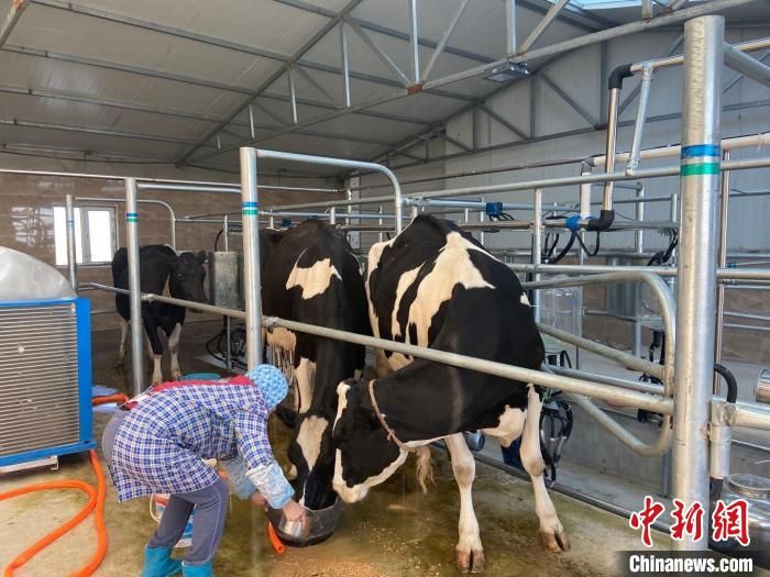 圖為工作人員正在照顧奶牛。 受訪者供圖