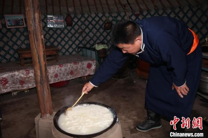 圖為多年前,貸慶在蒙古包里制作傳統(tǒng)奶食品。 受訪者供圖