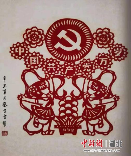 在中國共產(chǎn)黨成立100周年之際,棗陽市非物質(zhì)文化遺產(chǎn)傳承人蔡世吉,以紙、刀、剪等工具,創(chuàng)作出一幅幅精美絕倫的剪紙藝術作品,謳歌黨的豐功偉績,表達對祖國繁榮富強的美好祝愿。