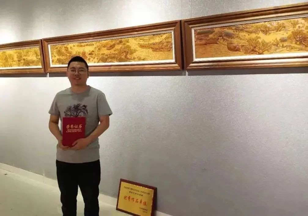 包頭市東河區(qū)皮雕畫非遺項(xiàng)目傳承人張衛(wèi)祥,2012年畢業(yè)于中央美術(shù)學(xué)院,受老師影響,畢業(yè)后一直致力于把皮雕與古代山水畫結(jié)合,使皮雕畫展現(xiàn)出古樸典雅的風(fēng)格,許多皮雕作品屢屢獲獎(jiǎng)。
