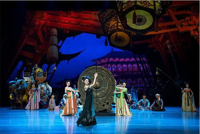 舞劇《傳絲公主》以蠶絲為戲劇元素,以蠶桑女寧兒與于闐王子尉遲的愛情為外在線索,以盛唐時中原與西域的交流往來為隱伏線索,將凄美的愛情故事與壯闊的家國情懷交織在一起,引領觀眾穿越到大唐盛世,感受繁興的絲路文化和豐富多彩的民族風情。