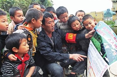 生態(tài)護(hù)林員向孩子宣傳森林防火知識(shí)