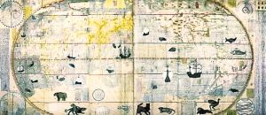 李之藻年輕時就對實(shí)學(xué)頗感興趣,曾自行繪制過明朝兩京十三省的地圖。見到利瑪竇用西法繪制的世界地圖后,李之藻敏感地意識到,這個地圖的繪制方法與中國傳統(tǒng)的“計里畫方”方法不同,是“取天文以準(zhǔn)地度”,用經(jīng)緯度確定地理方位。對利瑪竇的學(xué)問一見而傾心的李之藻,每天都要到利瑪竇的公寓學(xué)習(xí)地理、天文知識,每次都要花上四五個小時。1602年,李之藻與利瑪竇結(jié)合中西繪圖技術(shù),合作繪制了一版世界地圖《坤輿萬國全圖》,這幅地圖改變了當(dāng)時通行的將歐洲居于地圖中央的西方繪圖格局,把子午線向西移動170度,從而使東亞的中國居于地圖的中央,并且全圖標(biāo)上了詳細(xì)的漢字標(biāo)識,這是中國最早的世界地圖。