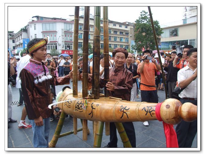 2008年,為慶祝北京奧運(yùn)會開幕,苗族著名蘆笙師傅梁炳光特制了一把高達(dá)10余米,重達(dá)240余公斤的蘆笙。這把號稱當(dāng)今蘆笙的王中王、世界蘆笙之最的蘆笙從備料到制作完成,梁師傅足足用了一個多月。這把蘆笙在北京奧運(yùn)會期間曾在融水民族廣場展示,萬人矚目。