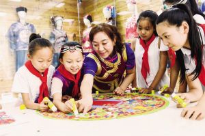 赤峰市松山區(qū)興安街道臨潢家園社區(qū)的民族融合小課桌。新華社發(fā)