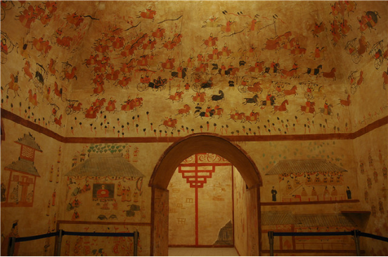 和林格爾東漢壁畫墓復(fù)原陳列展。位于和林格爾縣新店子鎮(zhèn)的小板申?yáng)|漢“使持節(jié)護(hù)烏桓校尉”壁畫墓,是秦漢文化的主要標(biāo)志性實(shí)物,是東漢莊園制度的真實(shí)再現(xiàn),也是民族團(tuán)結(jié)的重要?dú)v史見(jiàn)證。本館以1:1.5的比例進(jìn)行了復(fù)制并展示給觀眾。