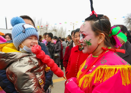 踩高蹺、秧歌、舞獅、腦閣、天倉舞、二人臺.....一個個精彩紛呈又獨具特色的民間傳統(tǒng)表演吸引著十里八鄉(xiāng)的村民和慕名而來的市民。大家或跟著哼唱著民間小曲,或拿出手機(jī)拍攝精彩演出,一個個寫滿了幸福的笑臉在討思浩村廣場競相綻放。